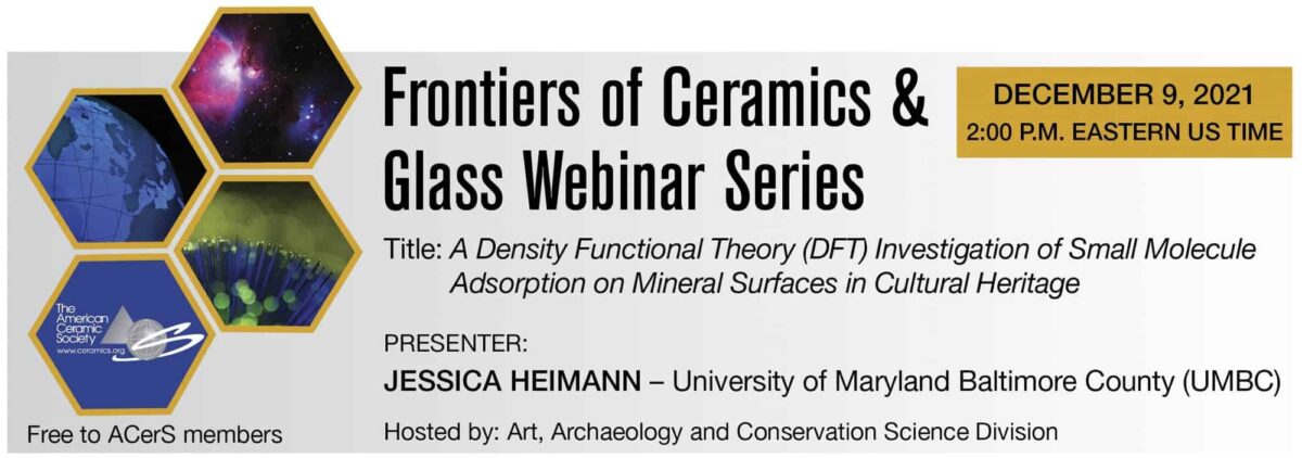 Read MoreFrontiers of Ceramics & Glass Webinar Series: A Density Functional Theory (DFT) Investigation of Small Molecule Adsorption on Mineral Surfaces in Cultural Heritage