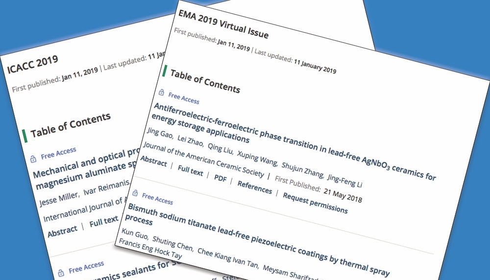 Want a taste of topics presented at ICACC and EMA meetings? Try a free sampling of peer-review journal articles gathered in two special conference collections, available through February.