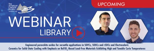 Sponsored by the ACerS International Italy Chapter and ACerS International Türkiye Chapter, the February webinar will feature two speakers: Engineered perovskite oxides for versatile applications in SOFCs, SOECs and rSOCs and Electrocaloric Ceramics for Solid-State Cooling with Emphasis on BaTiO₃-Based Lead-Free Materials Exhibiting High and Tunable Curie Temperatures