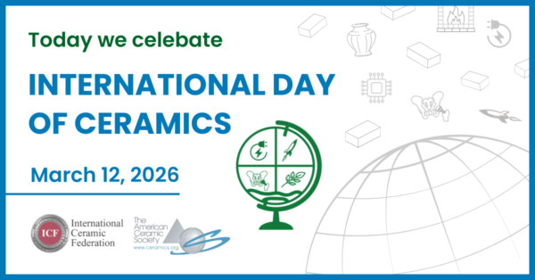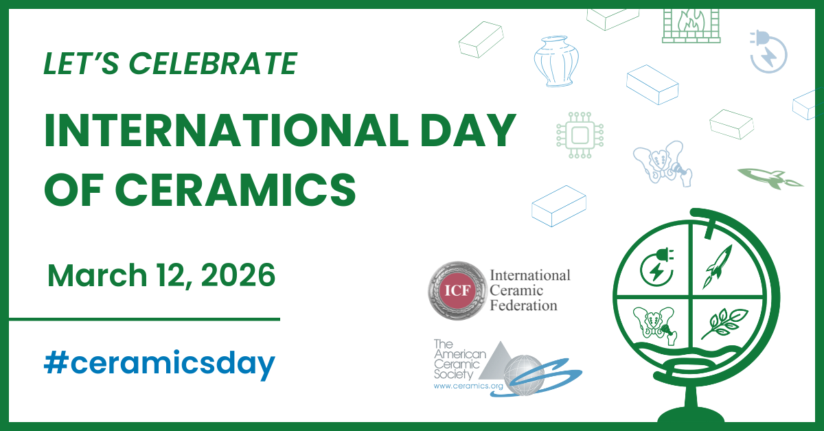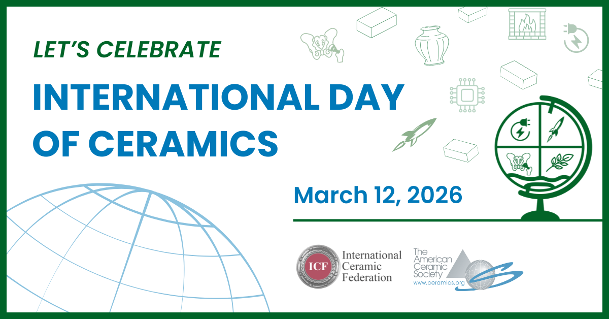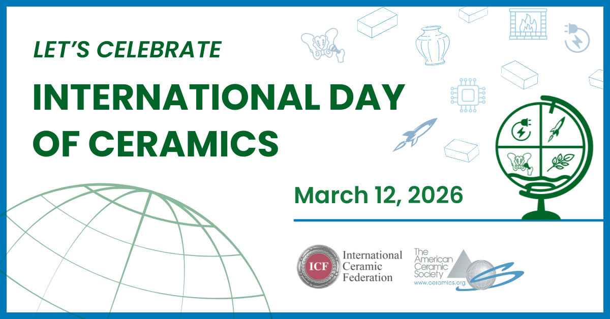The American Ceramic Society (ACerS) is proud to announce its participation in the first-ever International Day of Ceramics, a global initiative established by the Japan Fine Ceramics Association, the International Ceramic Federation, and other academic and industry organizations to celebrate and promote the vital role ceramics play in our modern world.