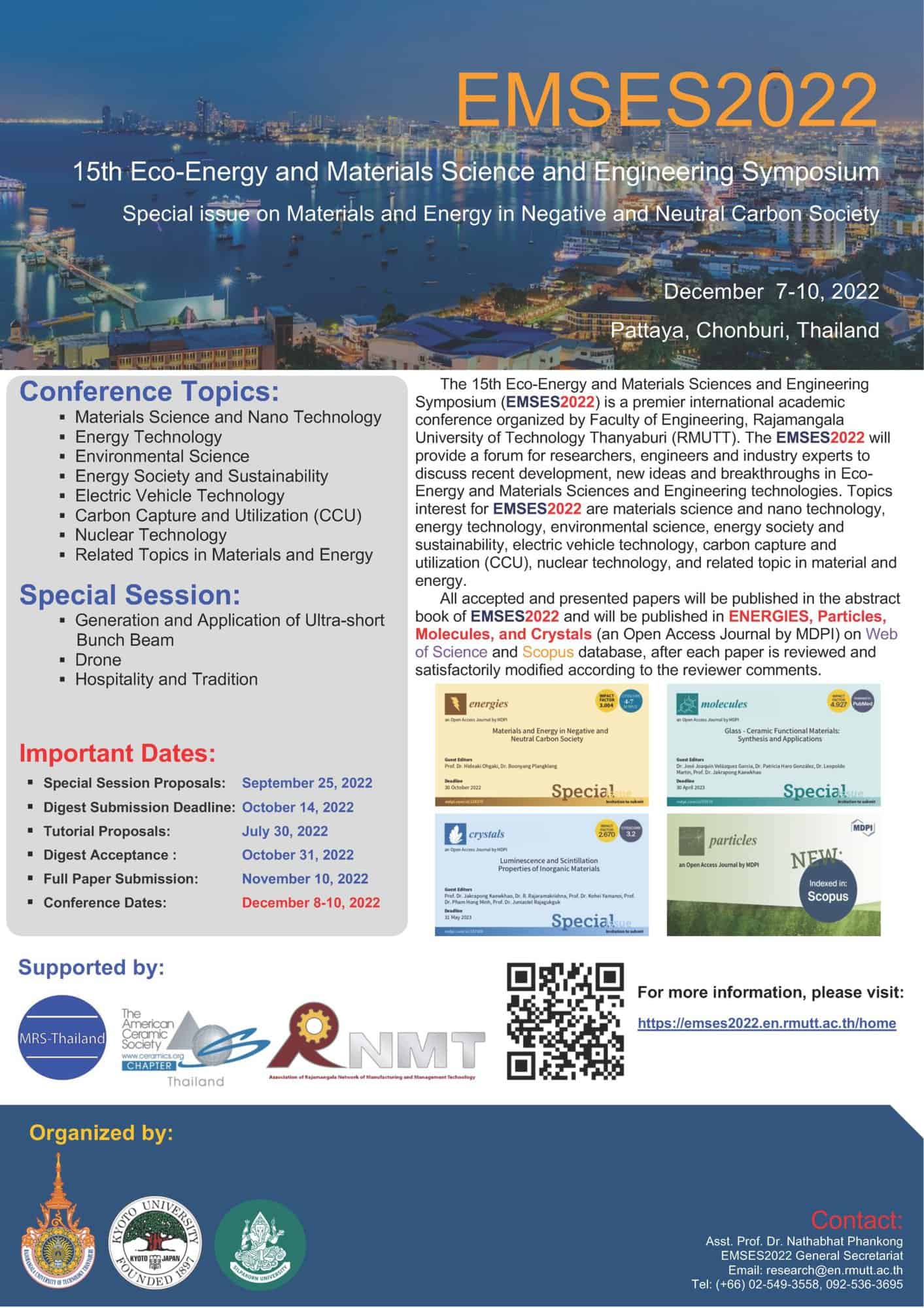 The 15th Eco-Energy and Materials Sciences and Engineering Symposium (EMSES2022)